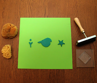 Det här är kul! Texilt tryck av alla slag. Tidigare har jag ju visat linoleumtryck. Nu har jag köpt någon sorts gummimatta på Inex, från samma ställ som linoleummattan och verktygen som hör till. Stämplarna monteras på akrylblock och trots att baksidan har en rutig struktur fäster de ganska bra. Färgen duttar jag på med svamp.